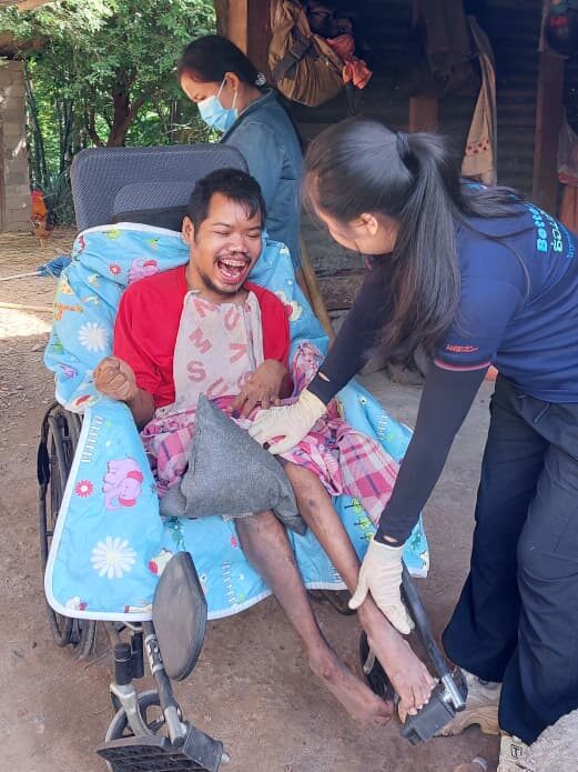 Après discussion avec l’équipe et la famille, nous avons choisi de les aider. En plus de l’accompagnement sur le plan kiné et nutritionnel, nous leur avons fourni du matériel.